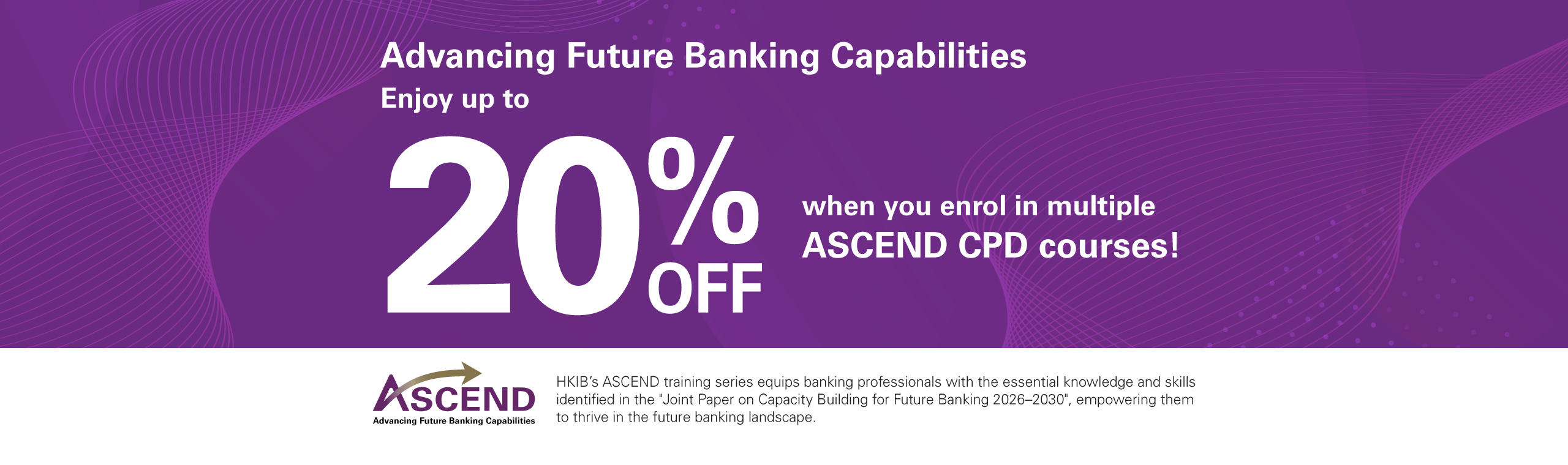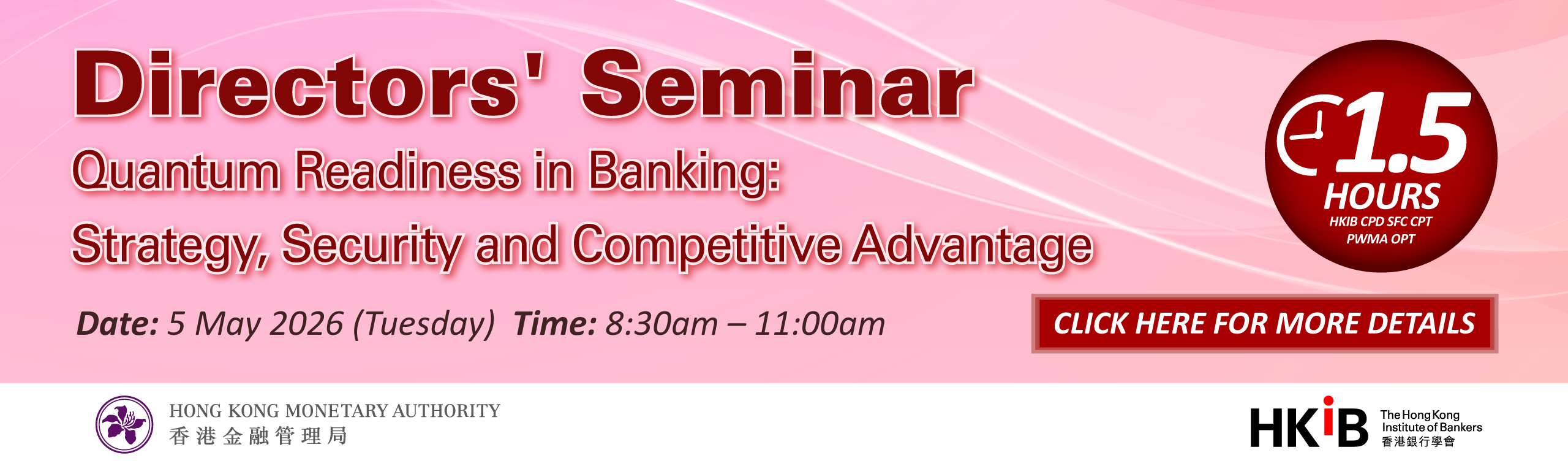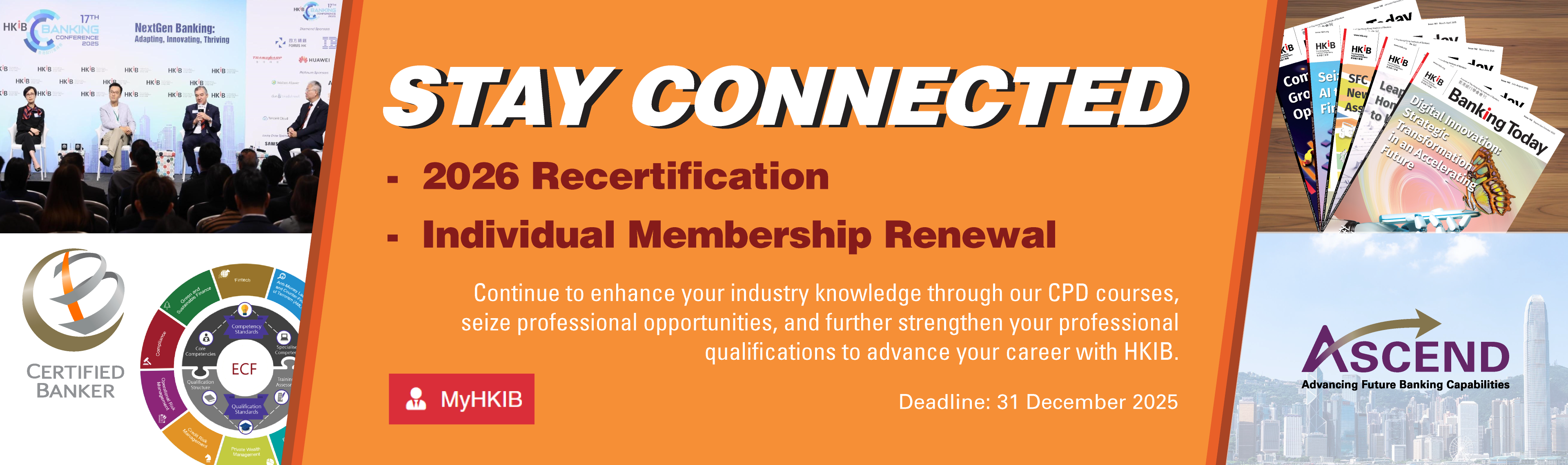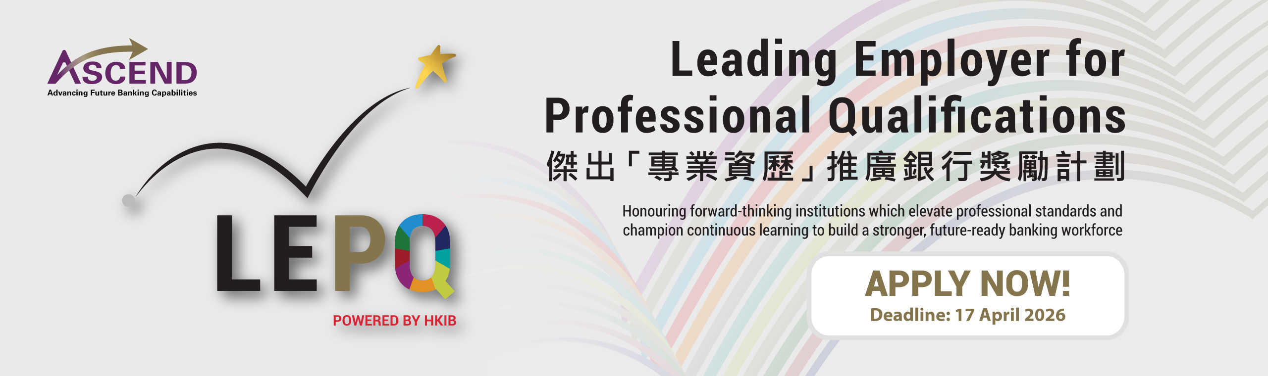 The Hong Kong Institute of Bankers (HKIB) is the first not-for-profit banking institute in Hong Kong which serves the local banking and financial industry as a professional training provider and qualification benchmark setter. With an objective of maintaining and further developing the Hong Kong’s status as an international financial centre, the banking institute strives to build a competent and sustainable talent pool by providing banking practitioners with professional training and development opportunities with the support of banks, regulators, financial institutions, academic institutions and professional bodies.