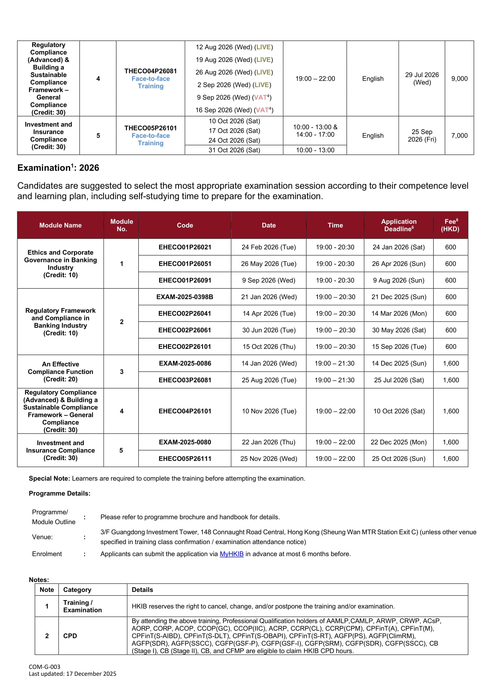 ^ HKIB student members can enjoy 25% off training fee discount and 50% off examination fee discount respectively.