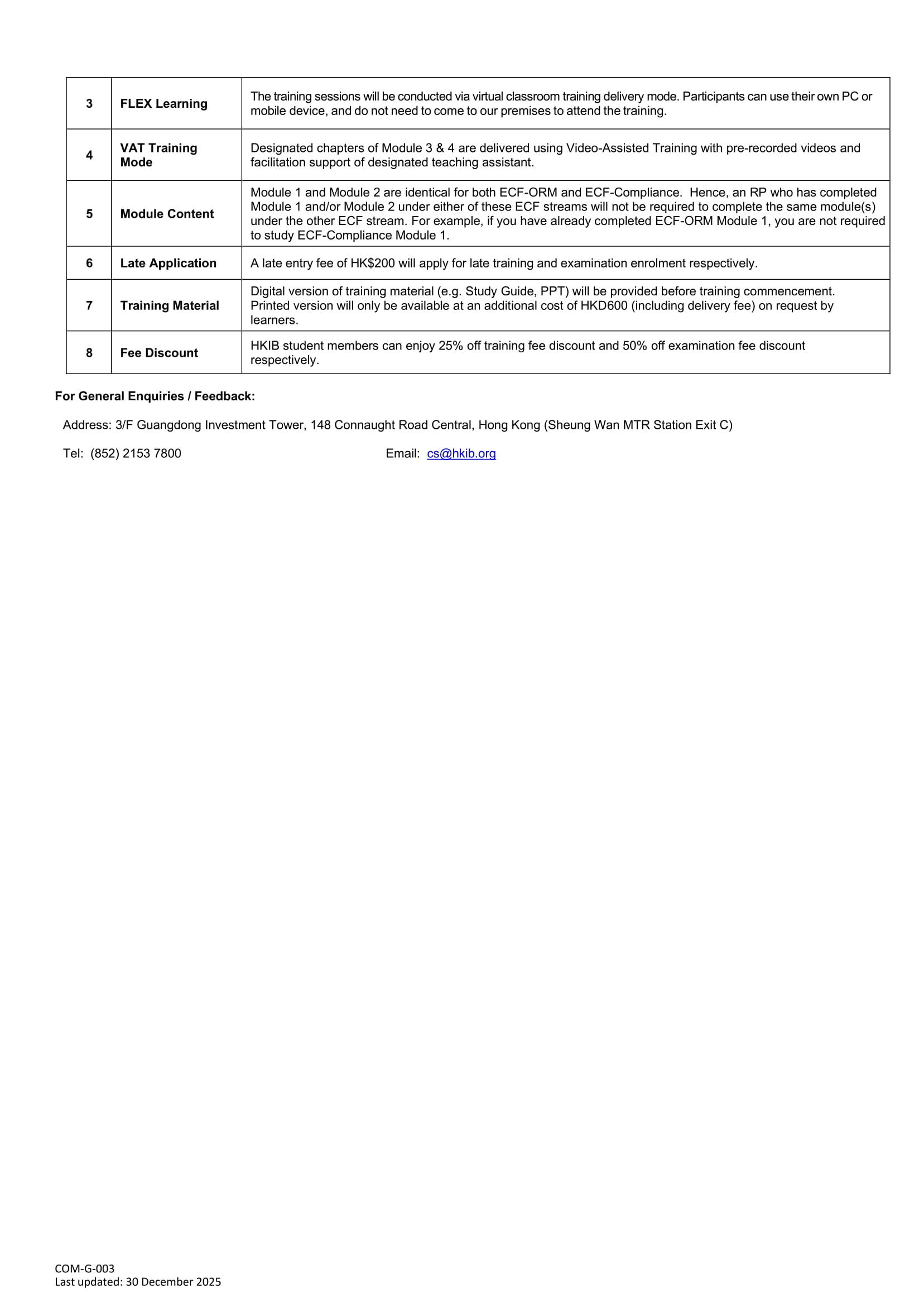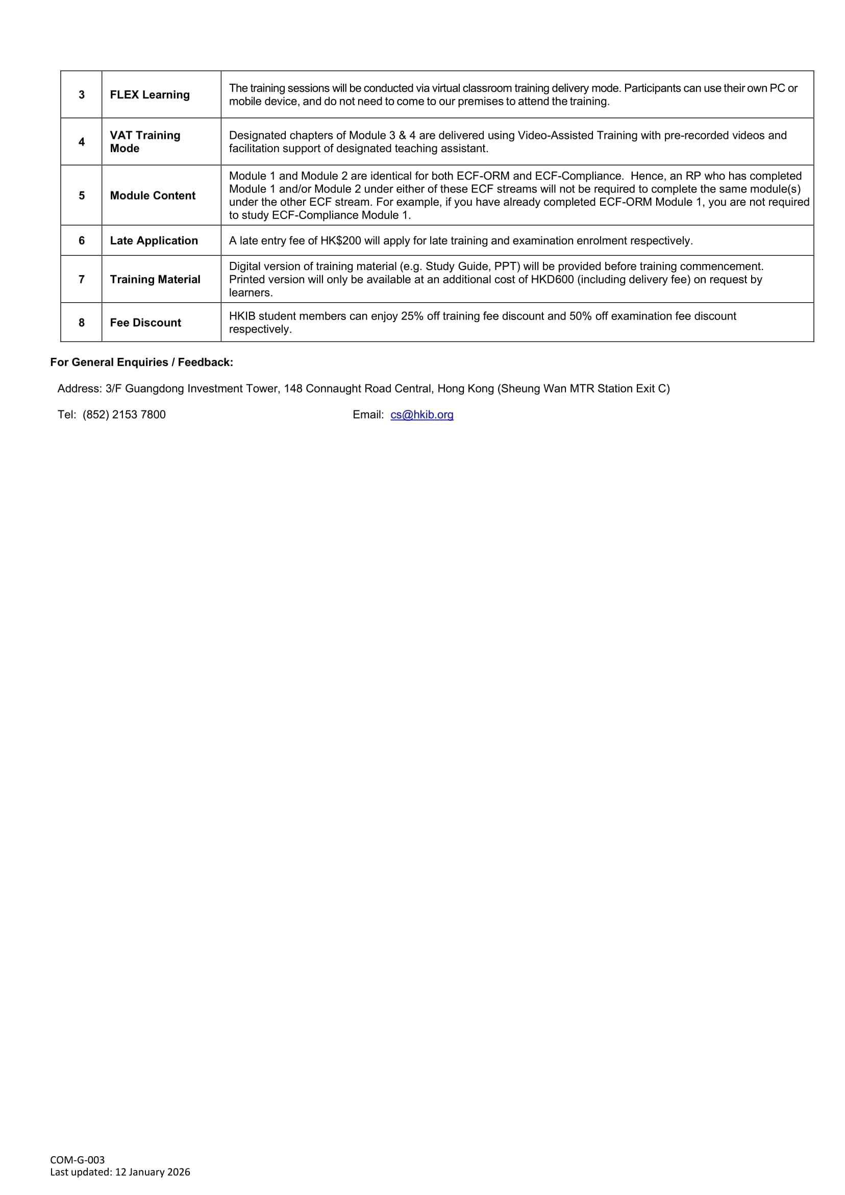 For details about ECF Affiliate, please contact HKIB at (852) 2153 7800 or email at cs@hkib.org.