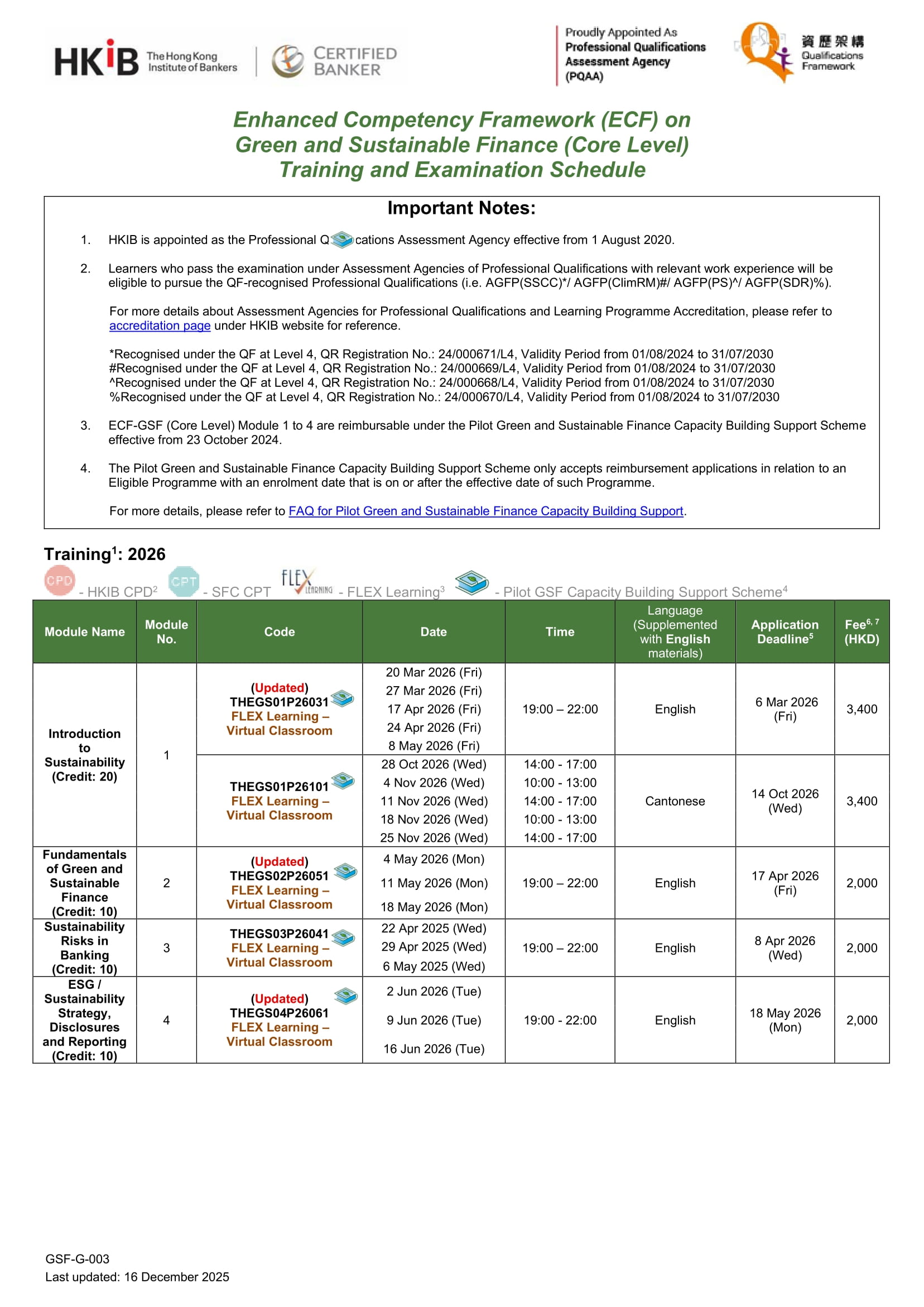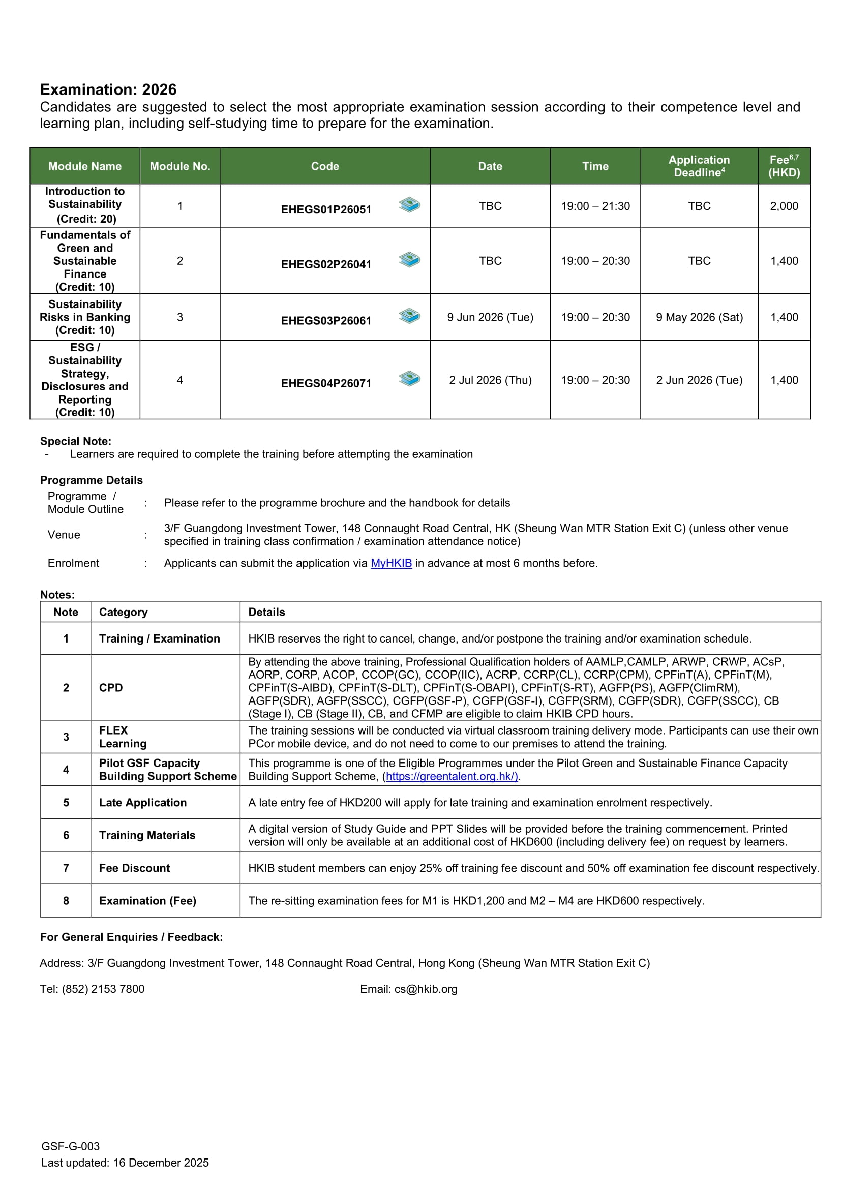 For more details, please refer to the HKMA's Guide to Enhanced Competency Framework on Green and Sustainable Finance.