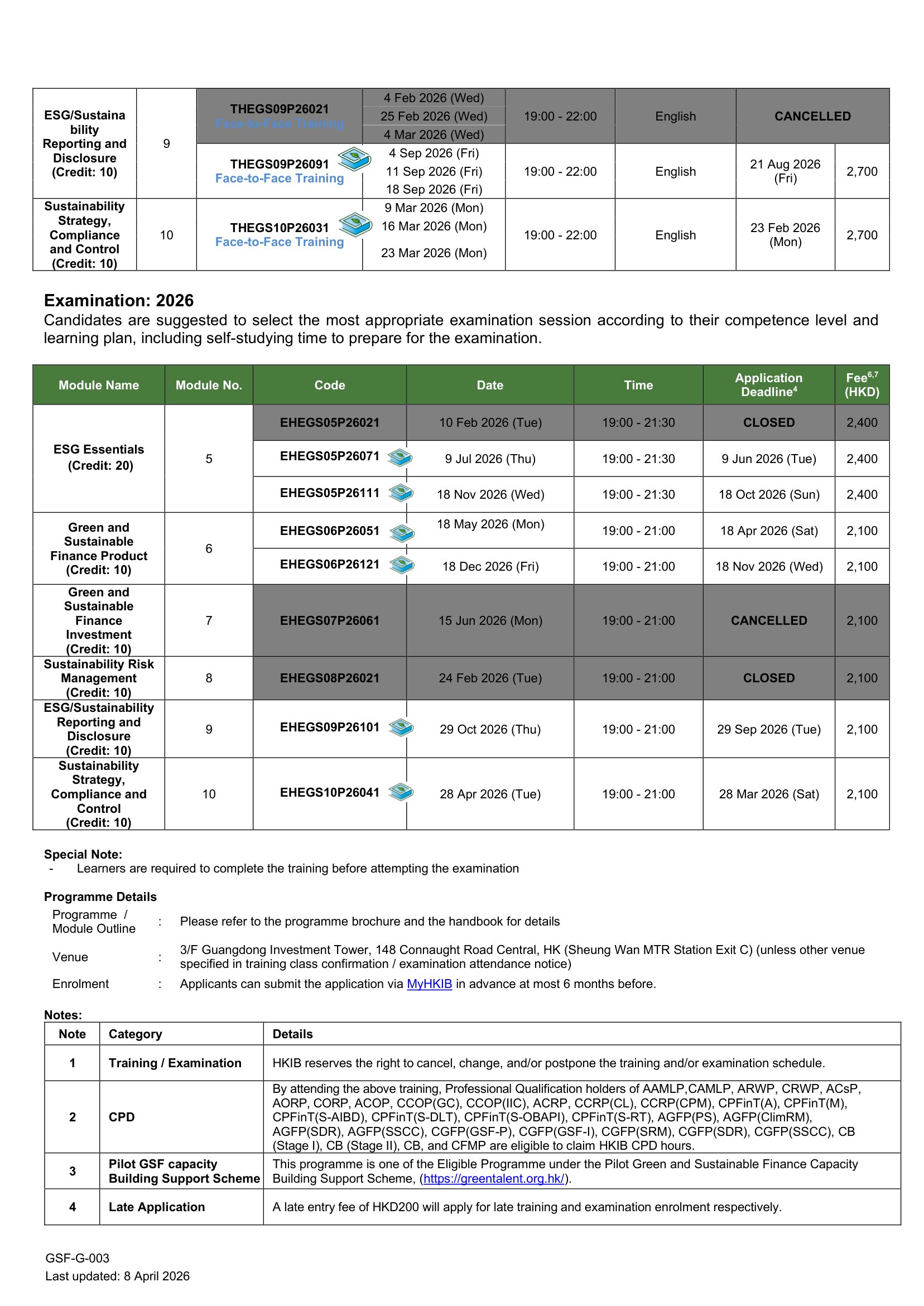 For more details, please refer to the HKMA's Guide to Enhanced Competency Framework on Green and Sustainable Finance.