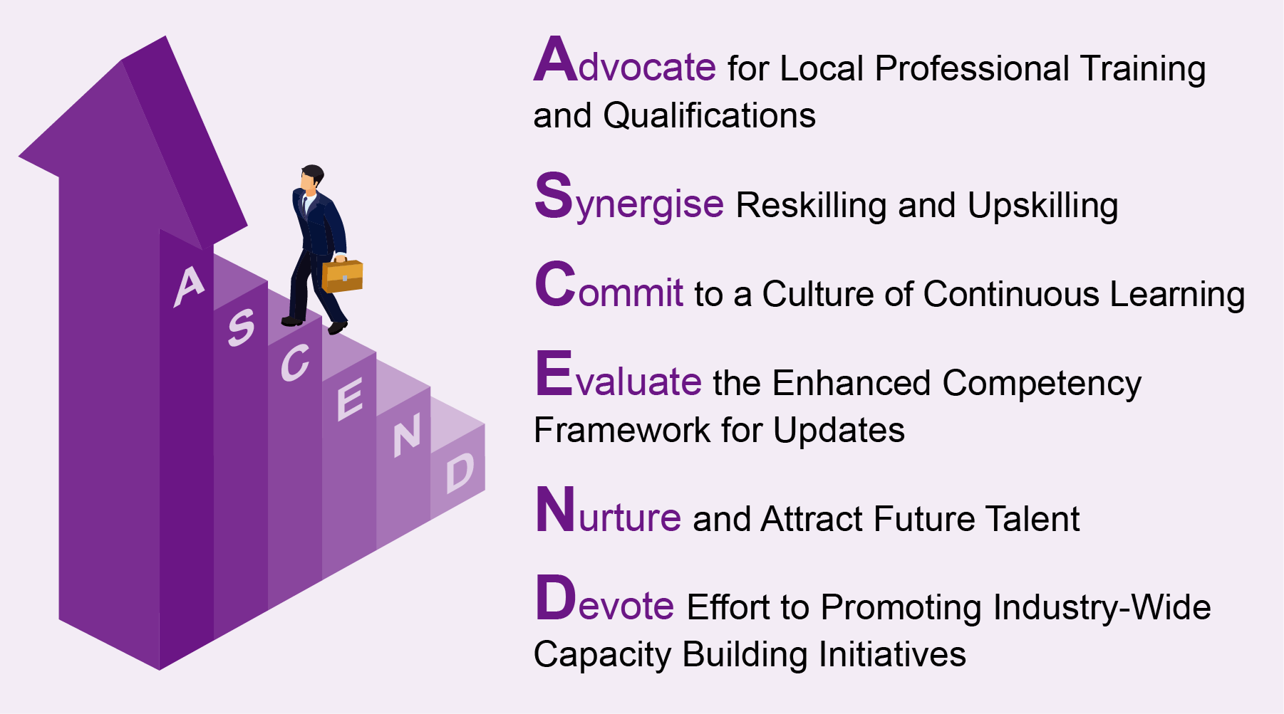 With these foundations in place, we will streamline the eight ECF core levels into a single level, encouraging banking practitioners to develop multi-skills and strengthen their core competencies. Our next step in 2026 is to initiate the revamp of the ECF programme where needed. It will also further strengthen the CB programme as the benchmark professional qualification for the industry, ensuring alignment with the A.S.C.E.N.D. framework and the evolving skills landscape.