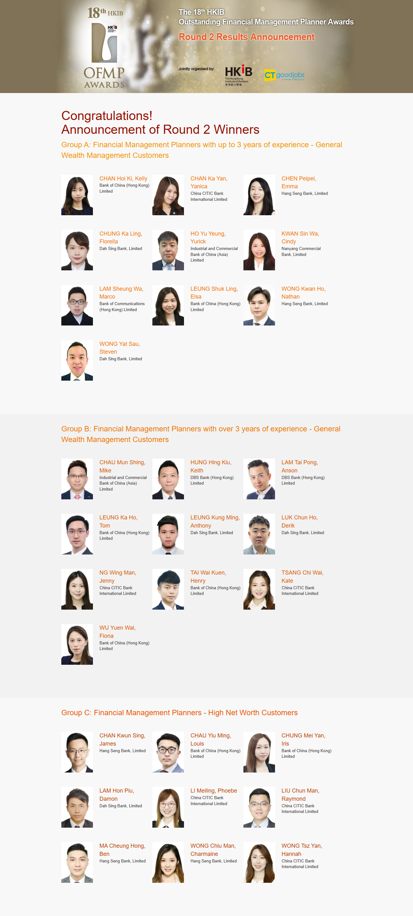 Amidst increasing awareness of the importance of financial planning and wealth management, HKIB strives to enhance the competency and integrity of financial planners and wealth management practitioners through this highly recognised Awards programme. Launched in 2006, the Awards recognise individuals who excel in the financial planning and wealth management profession.