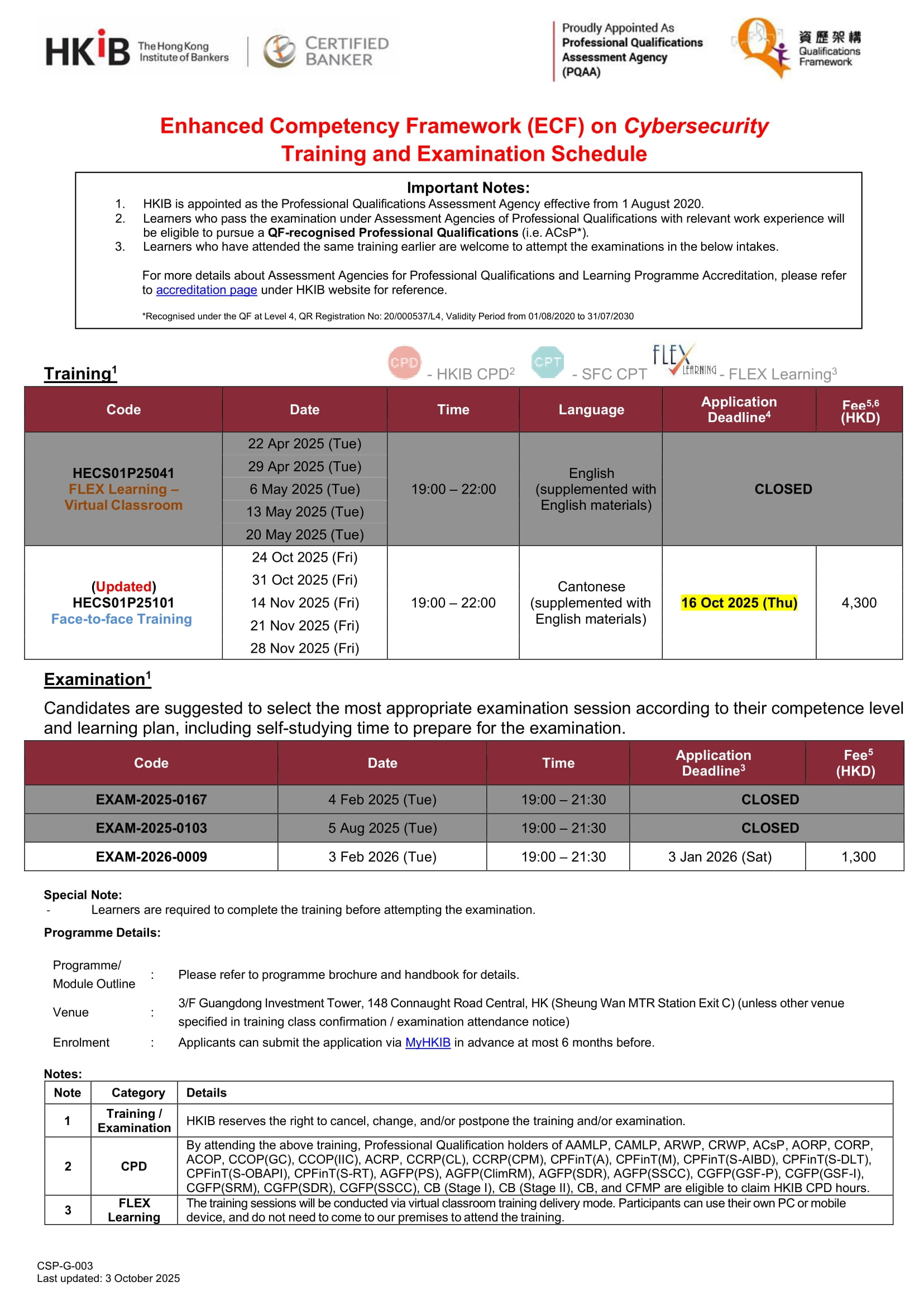 Please refer to HKMA Circular on "Guide to Enhanced Competency Framework on Cybersecurity" for details.