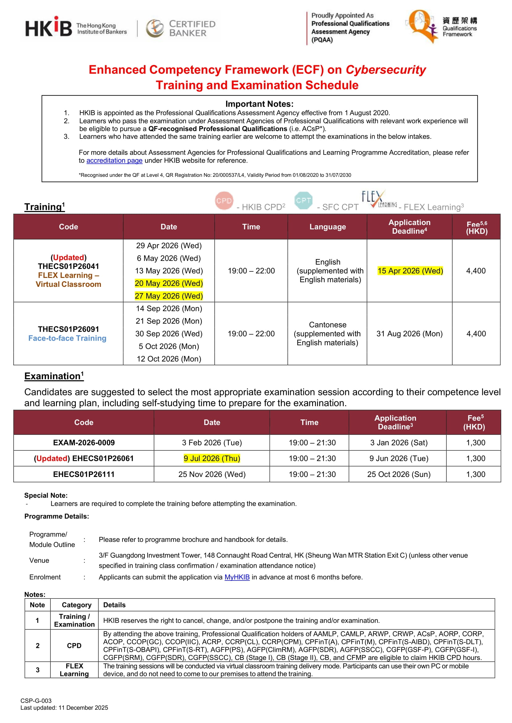 Late entries for training programmes will be accepted up to 7 days after the stipulated application deadlines. An additional late entry fee of HKD200 will apply.