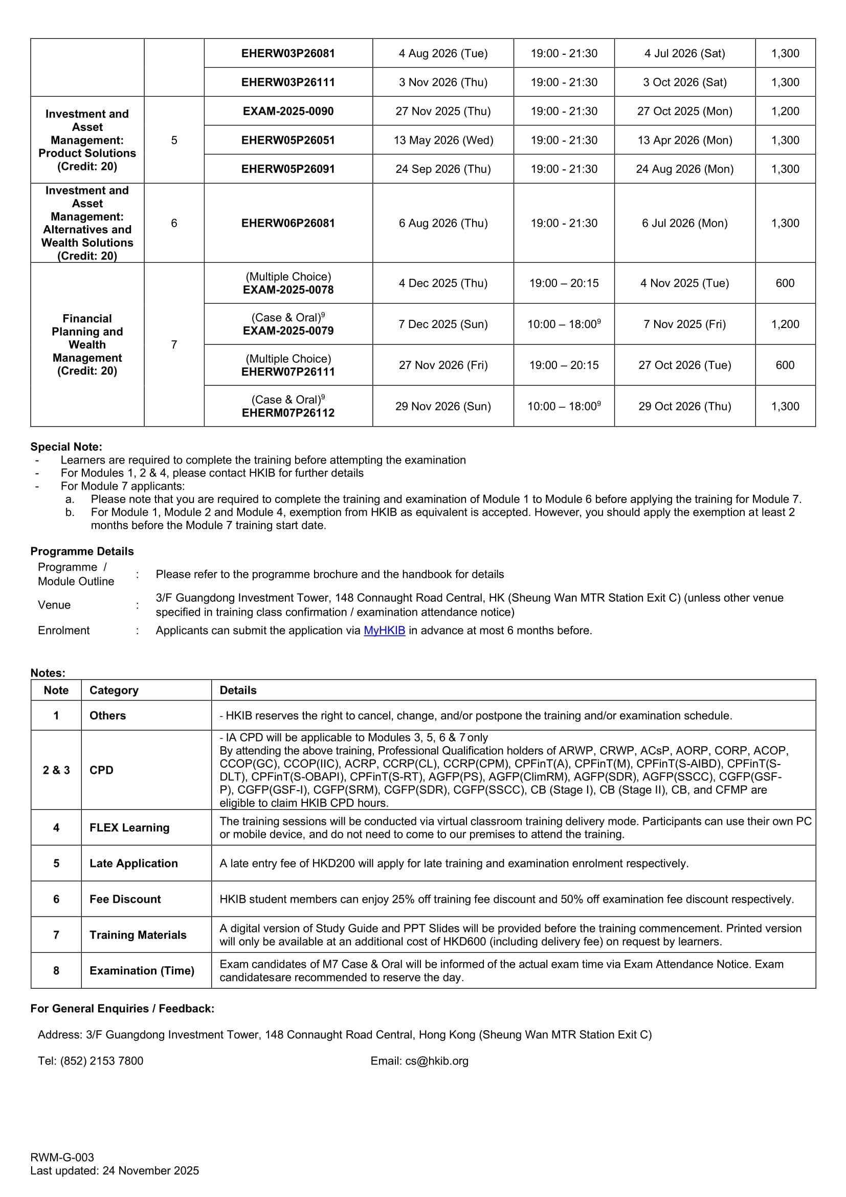 | Examination Fee^ | First attempt: HKD1,200 per module Re-sit: HKD1,200 per module |