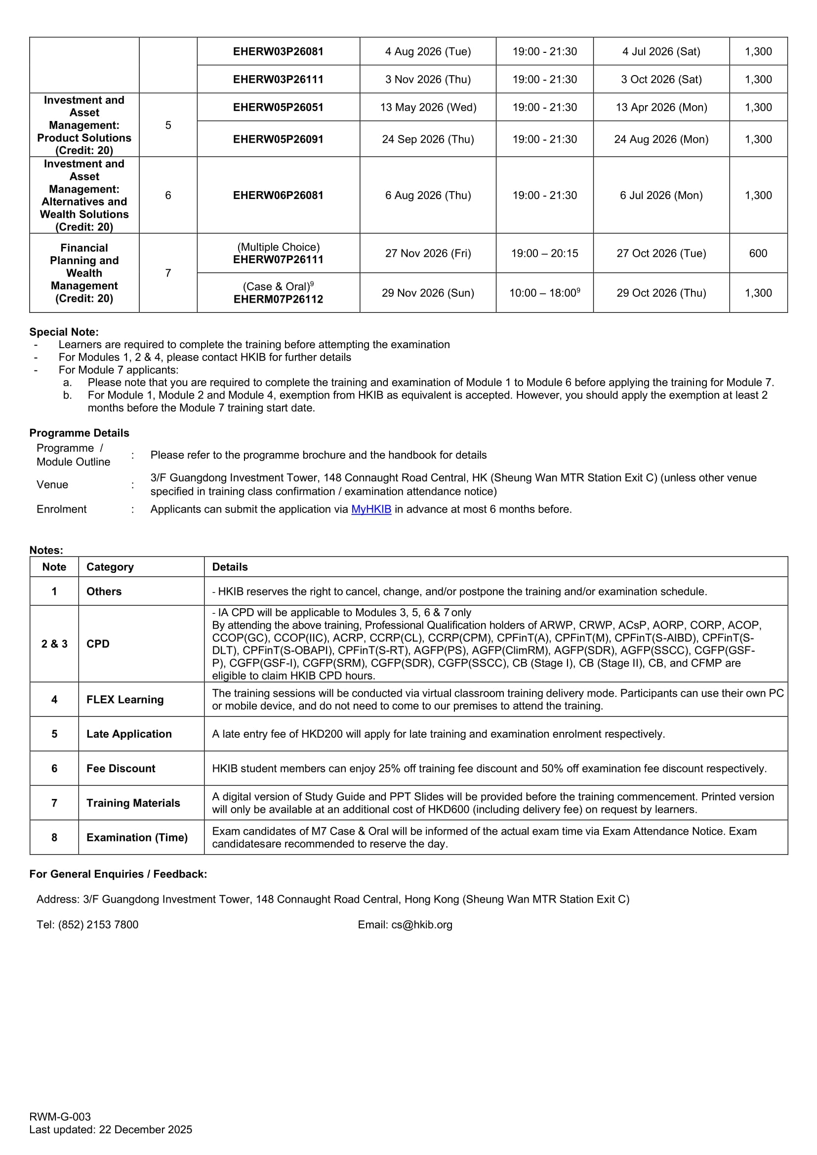 | Examination Fee^ | First attempt: HKD1,300 per module Re-sit: HKD1,300 per module |