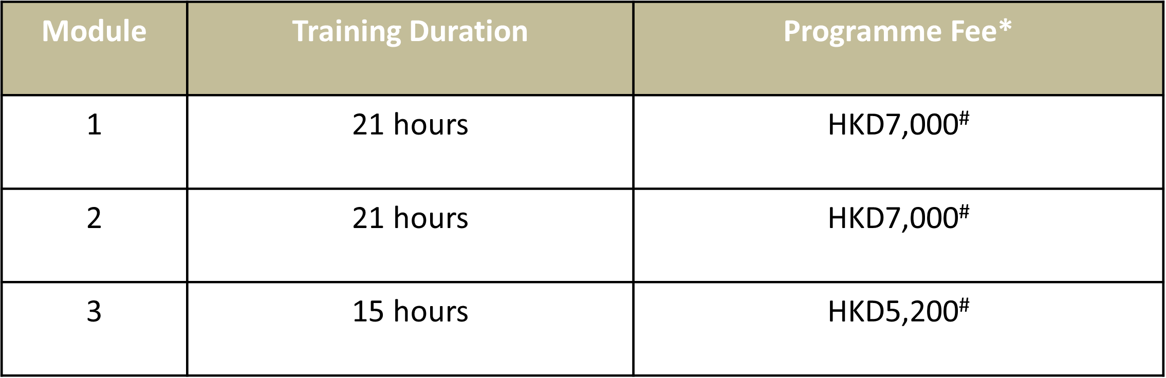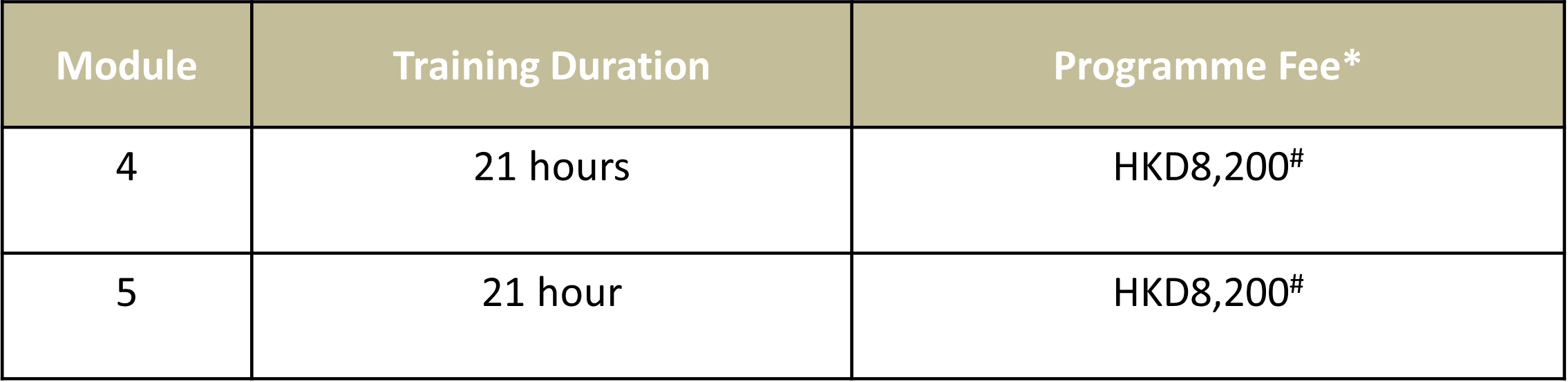 # A digital version of Study Guide and PPT Slides will be provided before the training commencement. Printed version will only be available at an additional cost of HKD600 (including delivery fee) on request by learners.