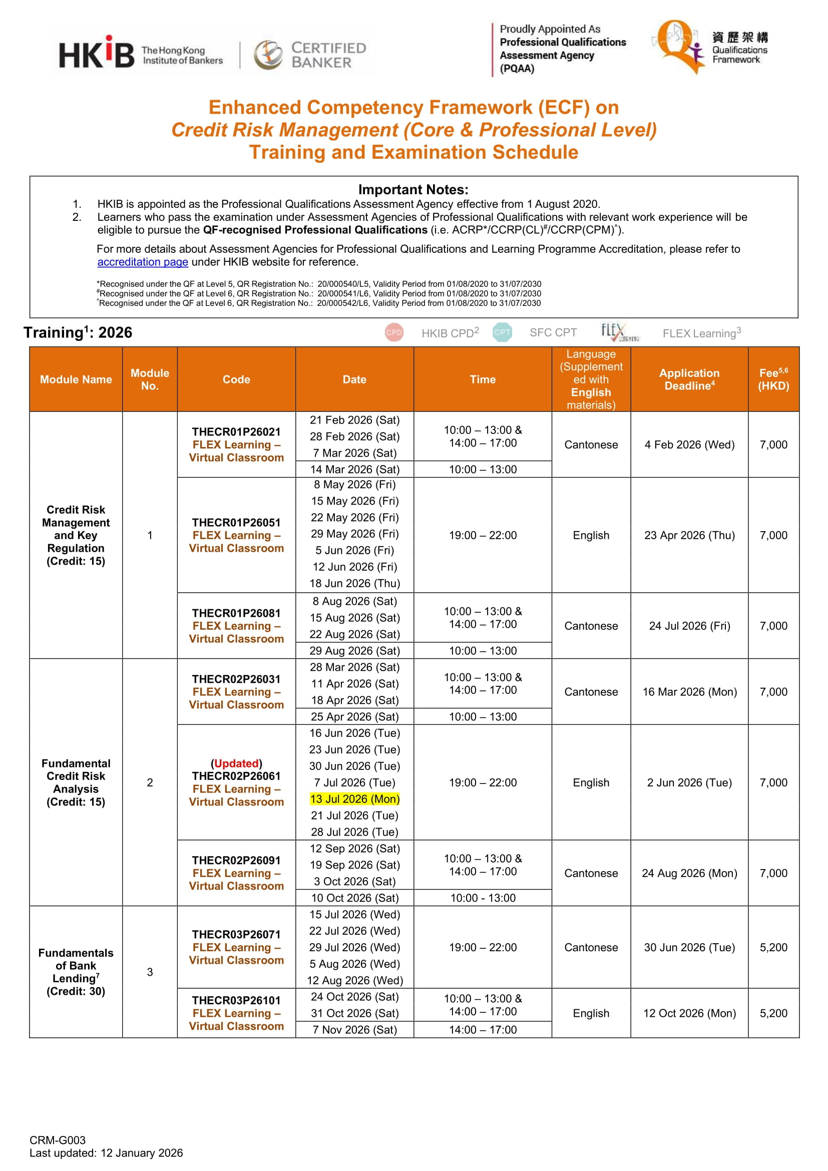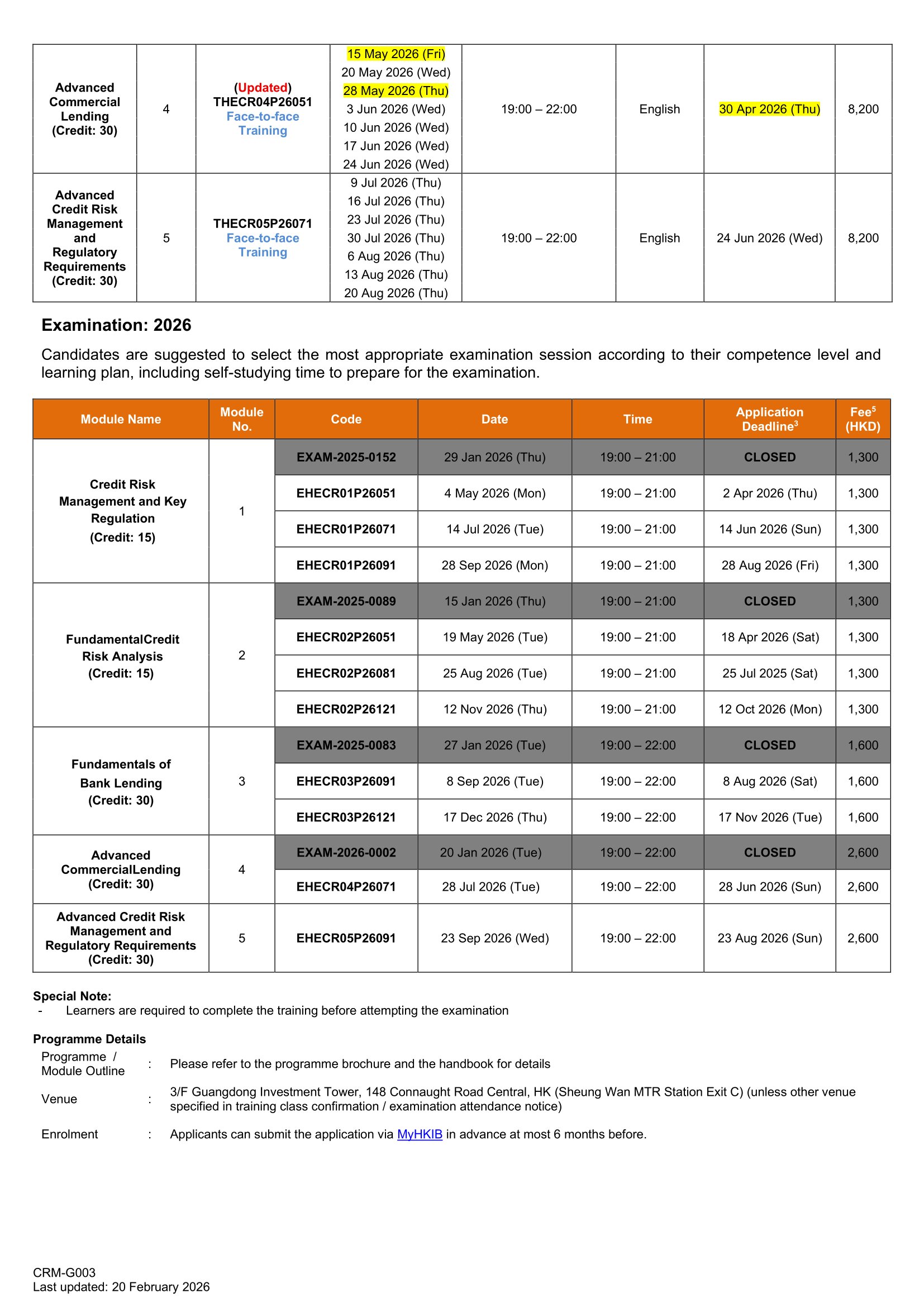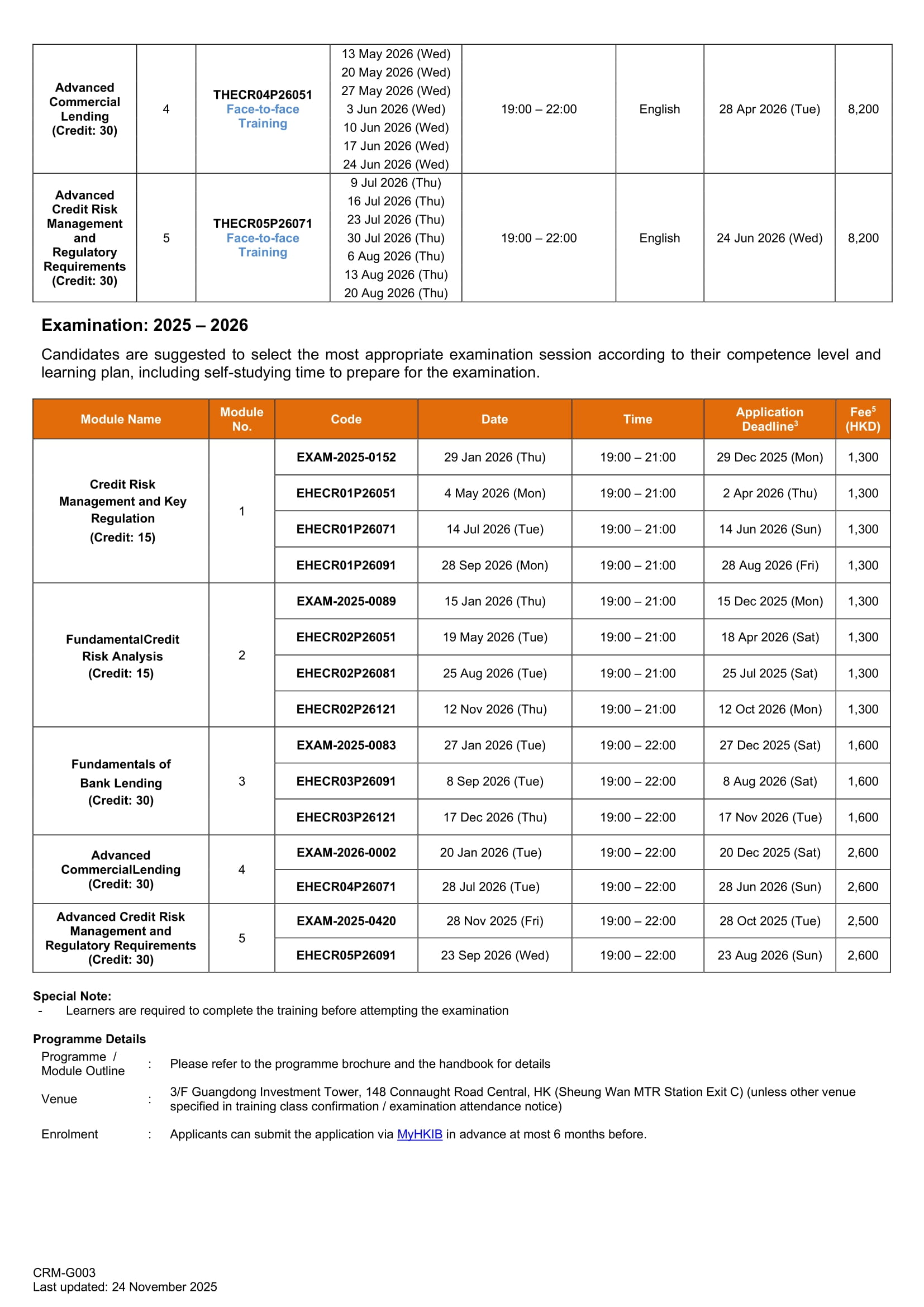 ^ Fundamentals of Bank Lending (Module 3) must be the last module that the learners attempt conditioned with the competition of Module 1 and Module 2 (completed Module 1 and Module 2 training and passed relevant examinations OR obtained modular exemption for Module 1 and Module 2).