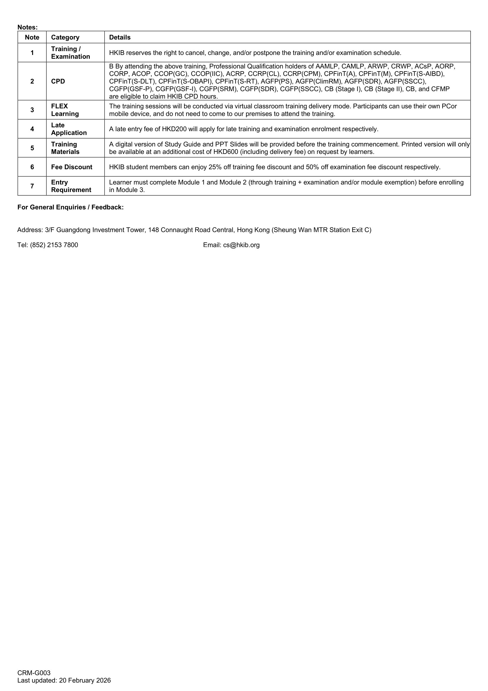 * HKIB student members can enjoy 25% off training fee discount and 50% off examination fee discount respectively.