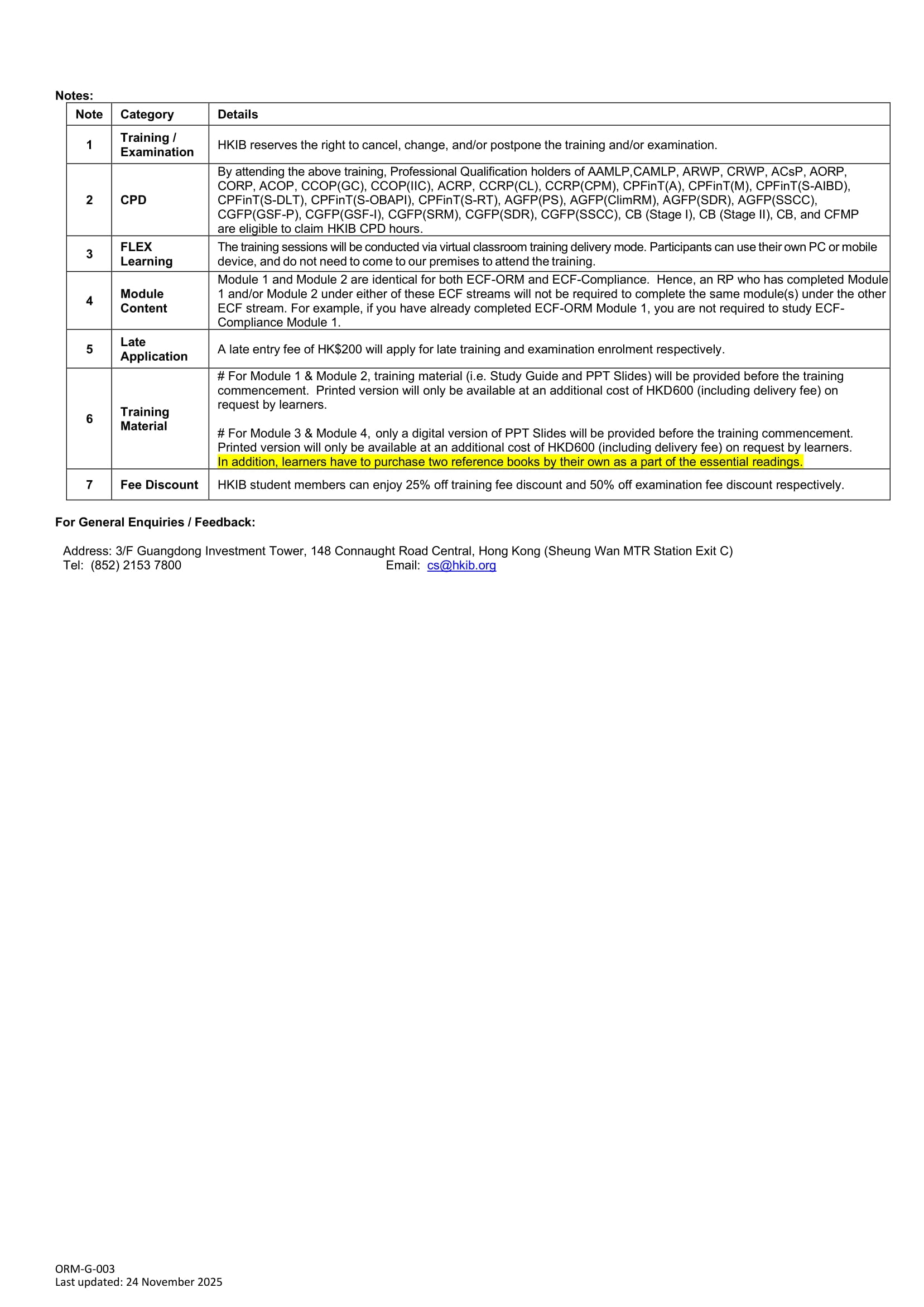 For details about ECF Affiliate, please contact HKIB at (852) 2153 7800 or email at cs@hkib.org.